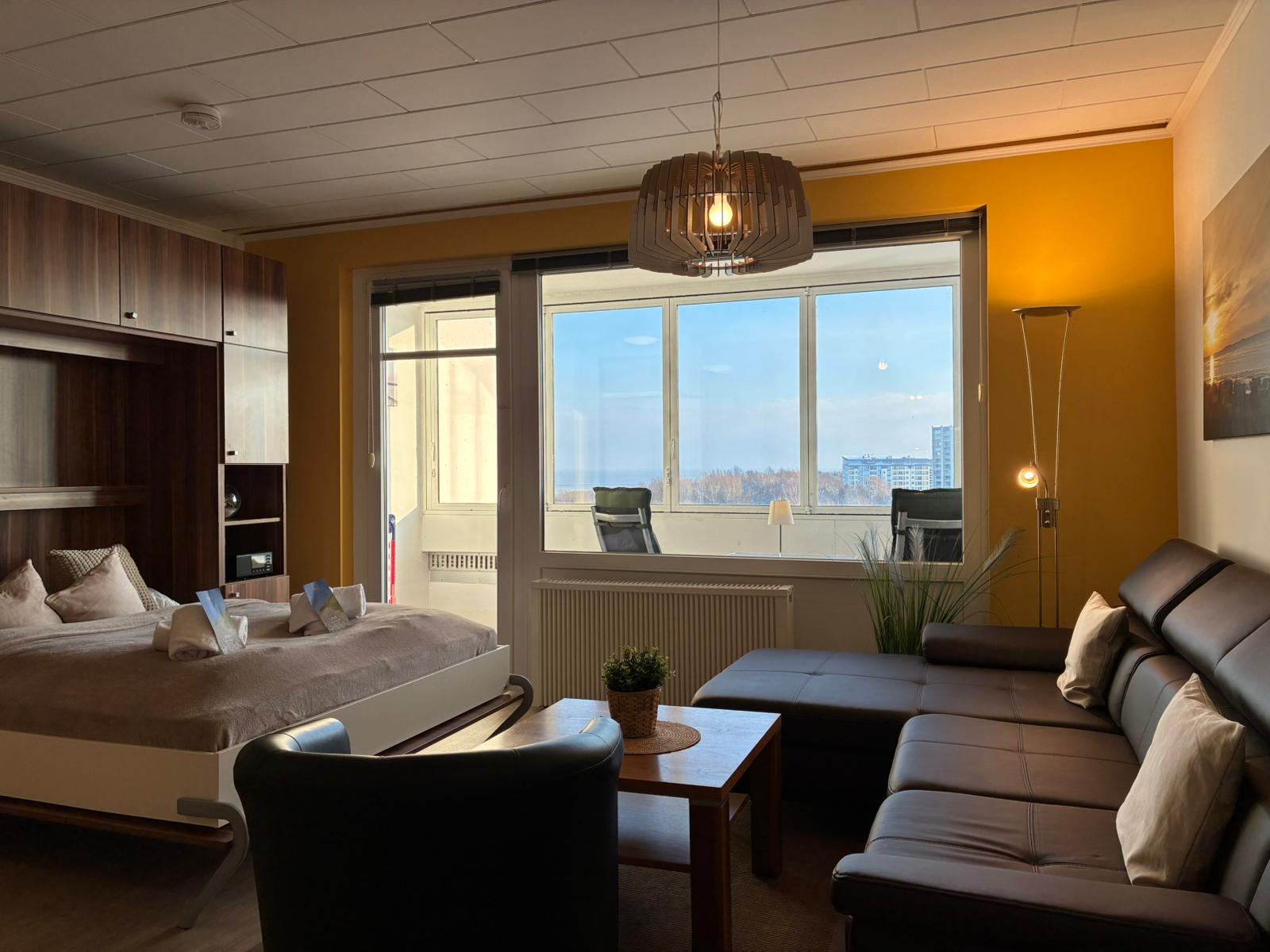 Bestaunen Sie Cuxhaven von oben: im 7. Obergeschoss des Hauses Atlantic bietet diese gemütliche Ferienwohnung einen fantastischen Ausblick und genügend Platz für bis zu 2 Personen. Auf 30 m² finden Sie hier alles, was Sie für einen erholsamen Urlaub benötigen. Im offenen Küchen-/Wohnbereich lässt es sich energetisch gemeinsam in den Tag starten und auf dem großen Sofa gemütlich vor dem LCD-TV gemeinsam entspannen. Durch das integrierte Schrankbett bietet die Wohnung viel Platz und der Wohnraum lässt sich optimal nutzen.