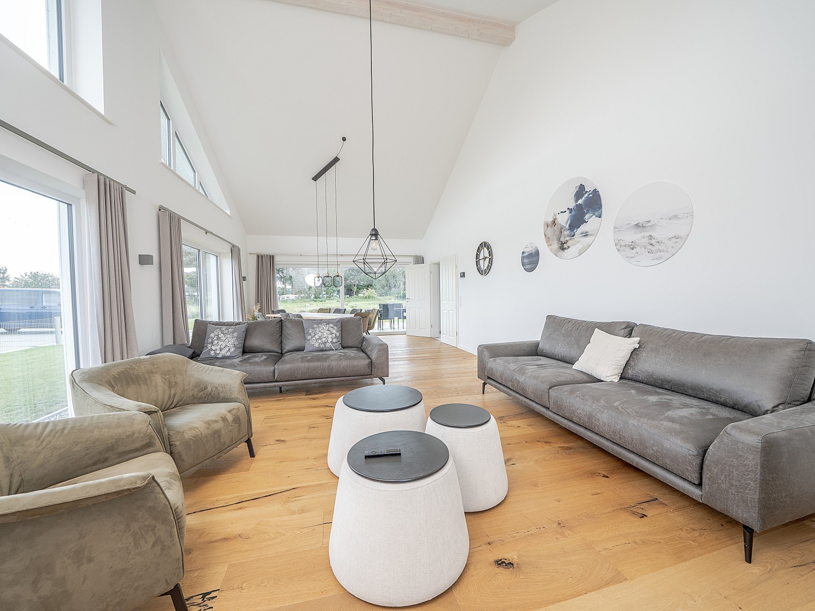 Der lichtdurchflutete Wohnbereich lädt zum gemeinsamen Kochen, Essen und Entspannen ein. Die sechs Schlafzimmer und vier Bäder bieten genügend Rückzugsorte für alle. Ein Highlight ist die hauseigene Sauna, die nach einem Spaziergang am Meer für wohlige Wärme sorgt.