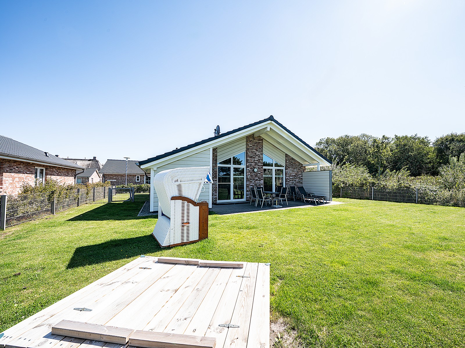 - Urlaub mit Kind & Kegel: Jedes Haus hat eine eigene Terrasse mit eingezäuntem Grundstück. So genießen Kinder und Vierbeiner maximale Freiheit und Sicherheit