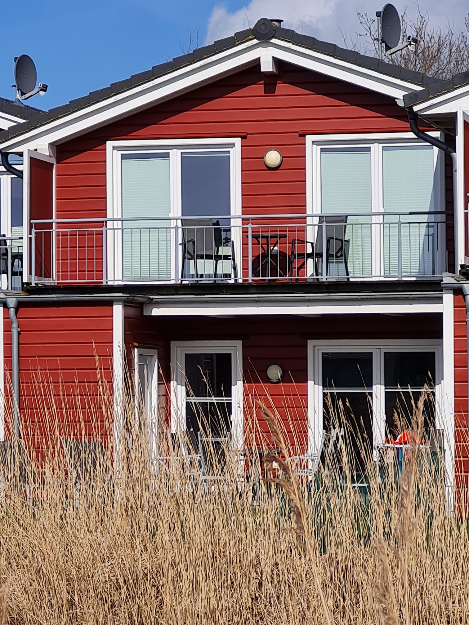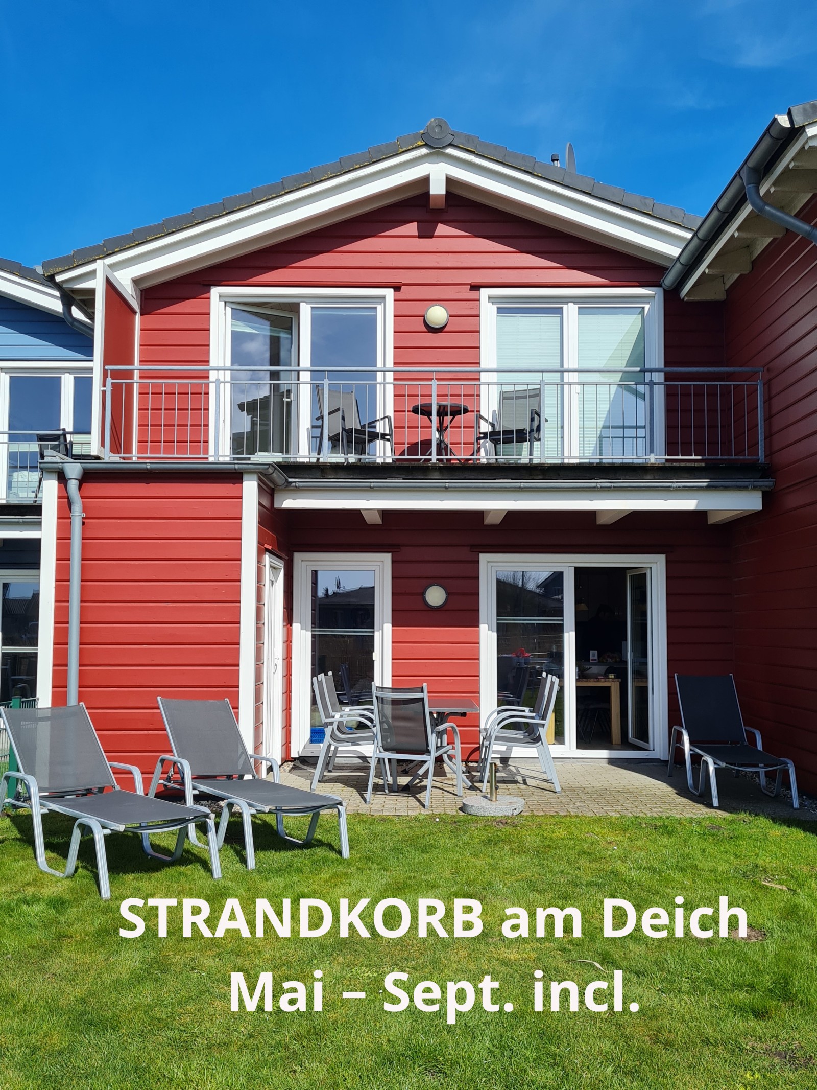Draußen genießen Sie die frische Seeluft auf der teilüberdachten West-Terrasse oder dem Balkon. Das eingezäunte Grundstück mit Grill, Sonnenliegen und Qualitätsgartenmöbeln lädt zum Verweilen ein.